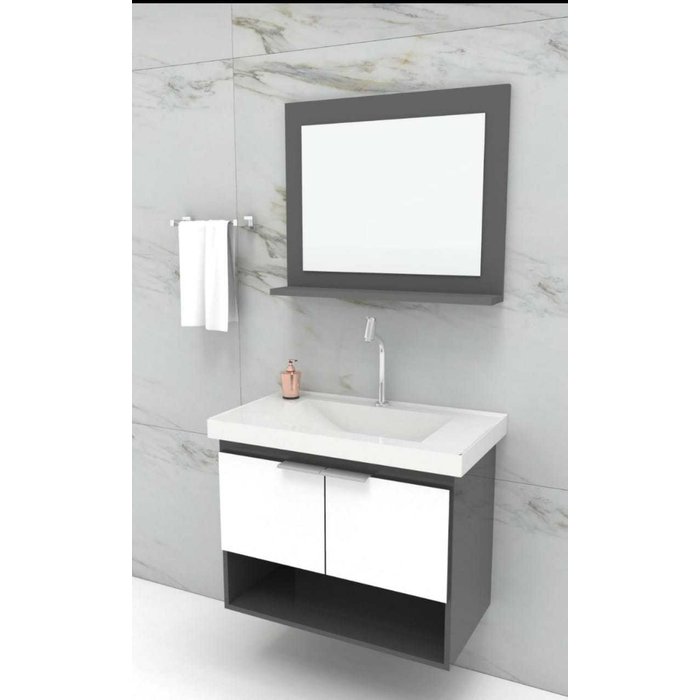 Armario Banheiro 60cm Kit Slim - Branco/grafite - Fimap