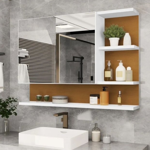 Transforme o visual do seu banheiro com a Espelheira Cleópatra, um item que combina design sofisticado e funcionalidade. Inspirada na elegância clássica, esta espelheira oferece: