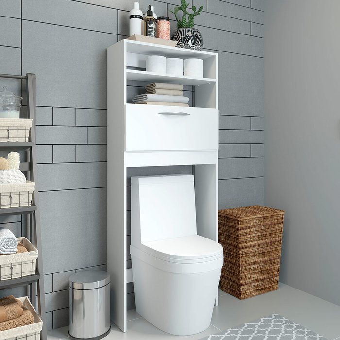 Armário Banheiro para Vaso Sanitário 63x160 Cm Lavabo Prateleira Porta MDP Branco 0550 - MENU