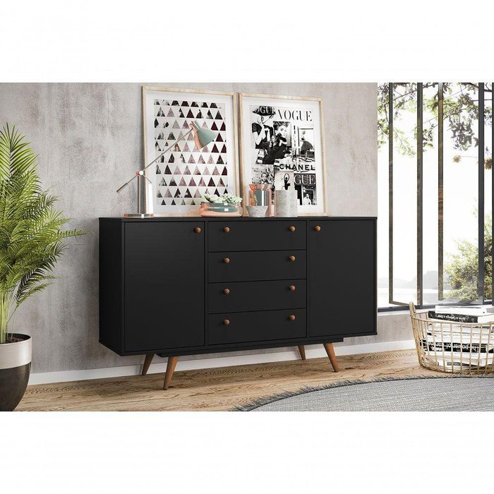 Armário Buffet Preto Retrô Califórnia Ac - Cor: Preto Preto