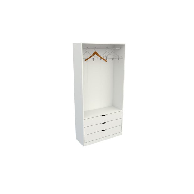 Seu design clean e acabamento na cor branca trazem leveza ao ambiente, sendo perfeito para quartos, closets ou apartamentos compactos. Além disso, o sistema modular permite fácil adaptação às suas necessidades do dia a dia.