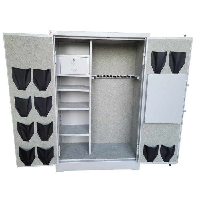 O armário cofre 140x90x40 cm cinza com carpete e coldre tem capacidade de armazenamento, Portanto é o queridinho dos colecionadores e atiradores esportivos, cac e os apaixonados por tiros esportivos. No entanto, esse armário cofre pode guardar uma diversidade de objetos de valores como por exemplo: documentos eletrônicos, jóias entre outros do segmento.