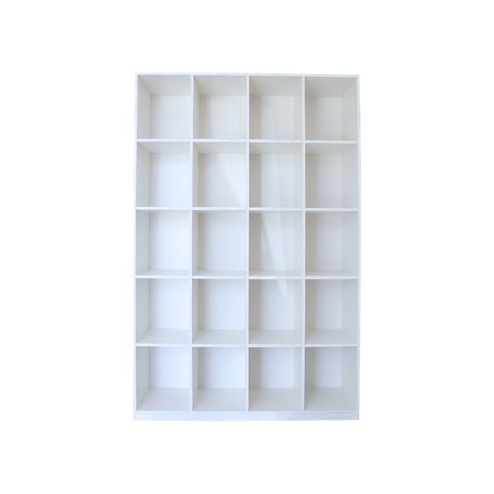 armário versátil conta com 20 nichos espaçosos (28x34x28cm cada),