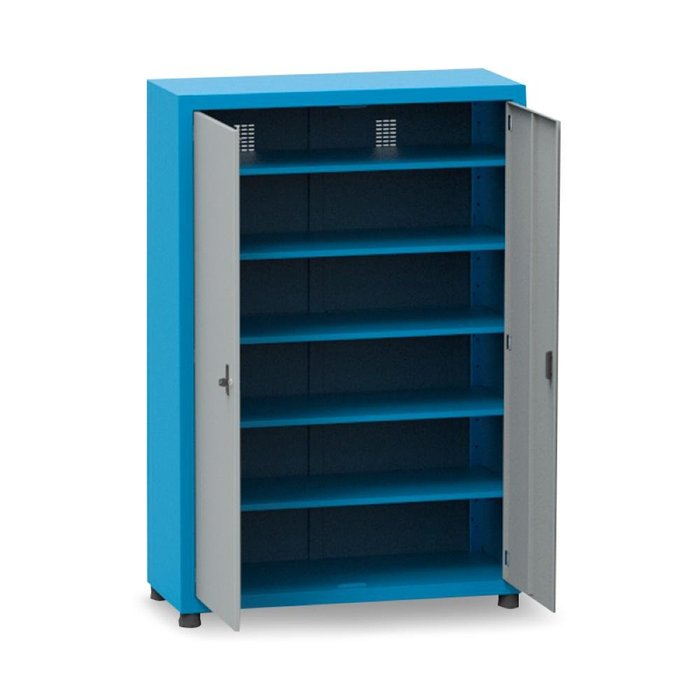 Cod. do Fornecedor: ARM001 Marca: CMB Conteúdo da embalagem: 1 Armário com 5 Prateleiras reguláveis ARM001 CMB Fabricado em material resistente para maior durabilidade. Possui fechadura com chave dobrável e pés niveladores. Armário Para Ferramentas com 5 Prateleiras Reguláveis é fabricado em chapas de aço carbono resistentes, recebe tratamento de superfície anticorrosivo e finalmente recebe um acabamento de tinta eletrostática a pó. É ideal para quem busca um produto diferenciado no mercado, de alta qualidade e durabilidade! Detalhes Técnicos Peso: 85Kg Dimensões: Comprimento 1200mm x Largura 500mm x Altura 1800mm Capacidade prateleira: 50Kg Capacidade total distribuída: 300Kg Fechaduras com chave dobrável nas portas Pés niveladores Regulagem das prateleiras: Possui furação a cada 10cm