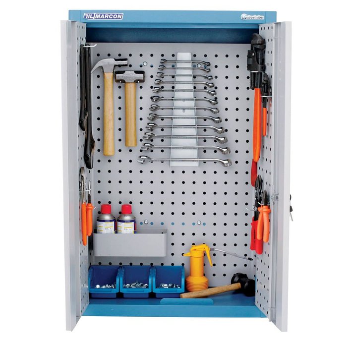 O Armário com Interior e Portas Revestidas com Chapa Perfurada para Pendurar Ferramentas Marcon AM-54 serve para organizar e armazenar ferramentas e componentes. As disposições de prateleiras, painéis e gavetas foram idealizadas para proporcionar maior praticidade e produtividade ao usuário durante o seu trabalho.