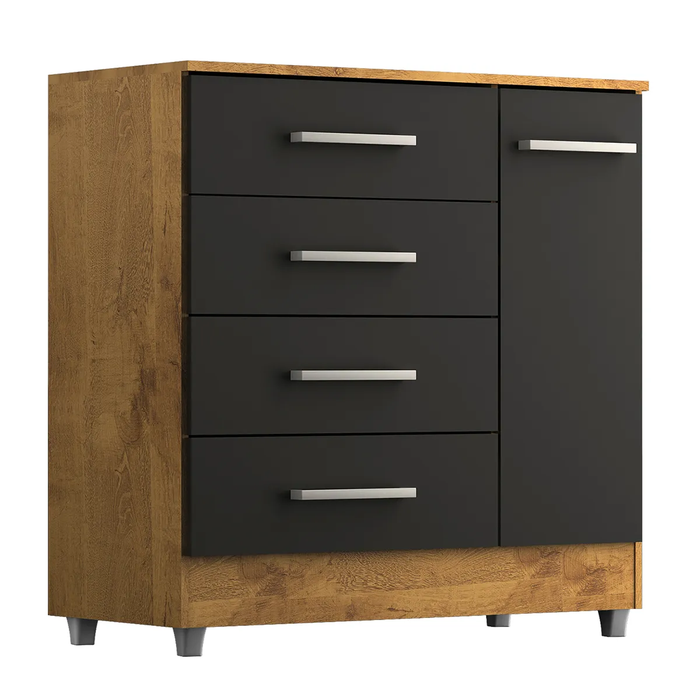 Armário Cômoda 4 Gavetas 1 Porta:castanho/onix Castanho/Onix