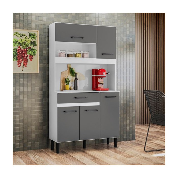 Armario Cozinha 5 Portas e 1 Gaveta Magazine 90 Branco/Chumbo