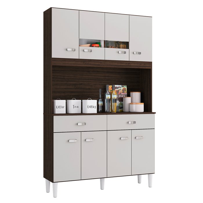 Armário Cozinha Kit Manu 8 Portas 2 Gavetas Poquema Móveis - Chocolate/OffWhite Chocolate/OffWhite