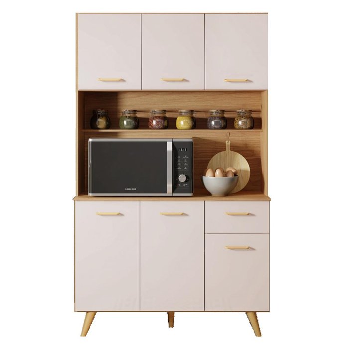 Esse modelo é composto por armários e gavetas que oferecem espaço suficiente para armazenar utensílios de cozinha e eletrodomésticos.
