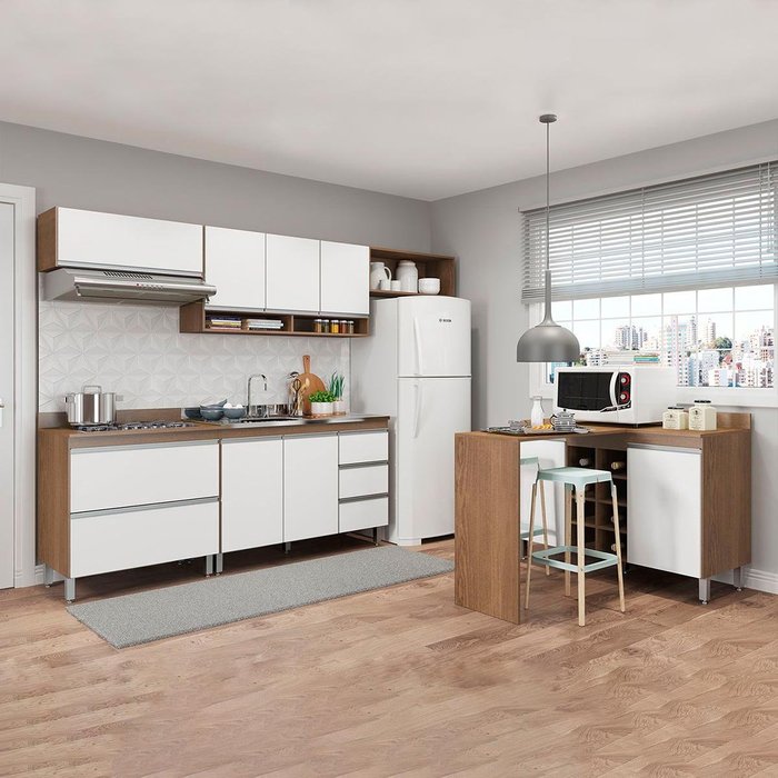 A Cozinha Sabrina Modulada foi desenvolvida para atender todas as suas necessidades do dia a dia com um design moderno, funcionalidade e versatilidade. A Cozinha Modulada é a tendência do momento e foi arquitetada com módulos úteis que vão facilitar a sua rotina diária, preparos dos alimentos e armazenamento dos utensílios e mantimentos, mantendo sua cozinha sempre organizada. Por se tratar de armários de cozinha modulados você pode ajustar os módulos conforme o espaço disponível e montar diversas modulações diferentes para deixar o ambiente muito mais aconchegante. A elegância fica por conta dos puxadores em perfil e os pés na cor prata dando um toque único de sofisticação. A Cozinha Sabrina é produzida com materiais de excelente qualidade, garantindo a durabilidade e vida útil. O melhor em móveis no design atual aliando conforto, qualidade e ótimos preços, só na Menu Móveis!
