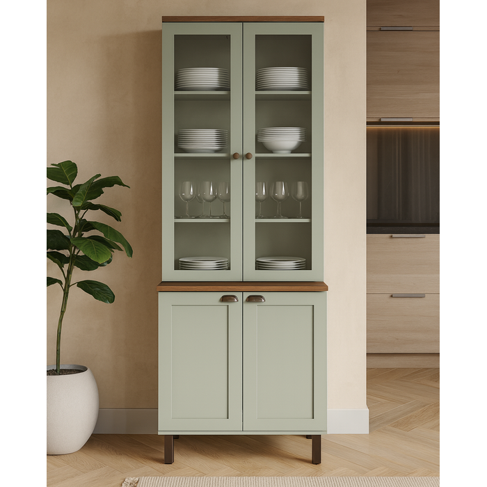 Armário Cristaleira com 2 Portas de Vidro e Balcão com 2 Portas Provençal 100% Mdf Verde Mint/Ébano