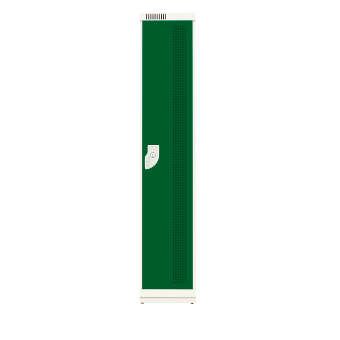 Armário de aço com 01 porta vertical. Possui cabideiro, prateleiras e trancamento triplo. Atende a NR 24 e é ideal para uso em vestiários de hospitais e indústrias. Resistente a corrosão, aliando robustez e durabilidade. Tamanho compatível com capacete de motocicleta.