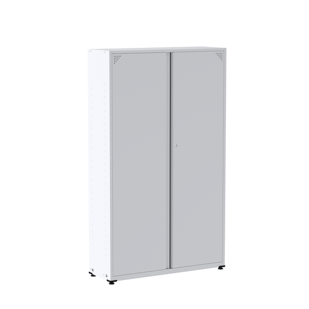 Nosso armário de aço tem duas portas com fechadura cilíndrica tipo Yale com duas chaves , 4 prateleiras que tem por sua vez a capacidade de 30 kg, facilitando a organização do seu ambiente de trabalho no dia .