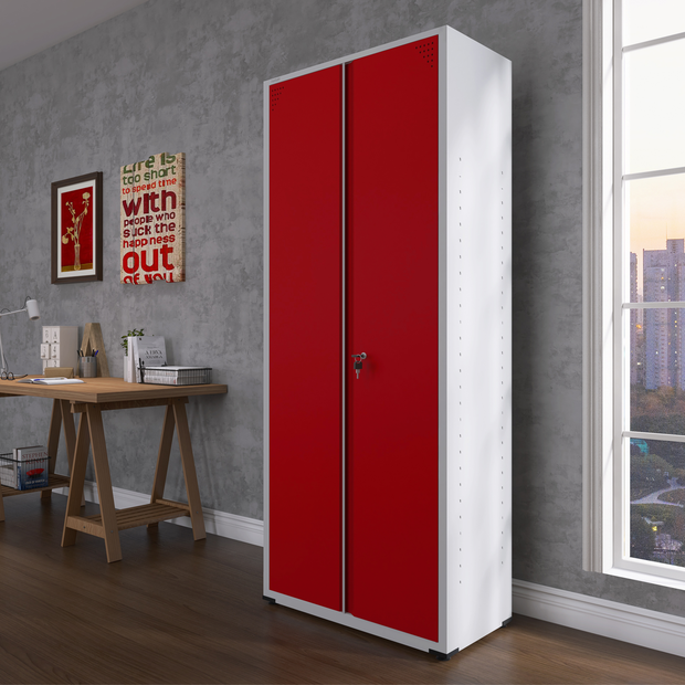 Armário de Aço 2 Portas 4 Prateleiras com Chave AP409SL Cinza/Vermelho