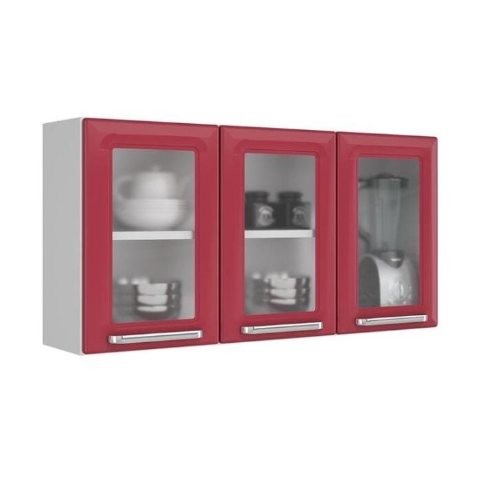 Armário De Aço 3 Portas Com Vidro Luce Branco e Vermelho Itatiaia Móveis