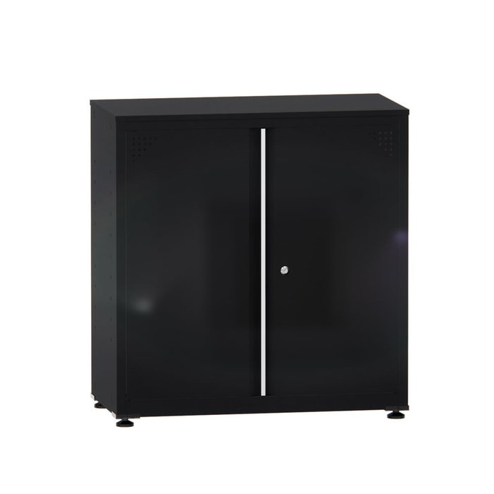 Armário de Aço Baixo com Tampo de Madeira Ap406sl Pandin 84 Cm Preto Preto