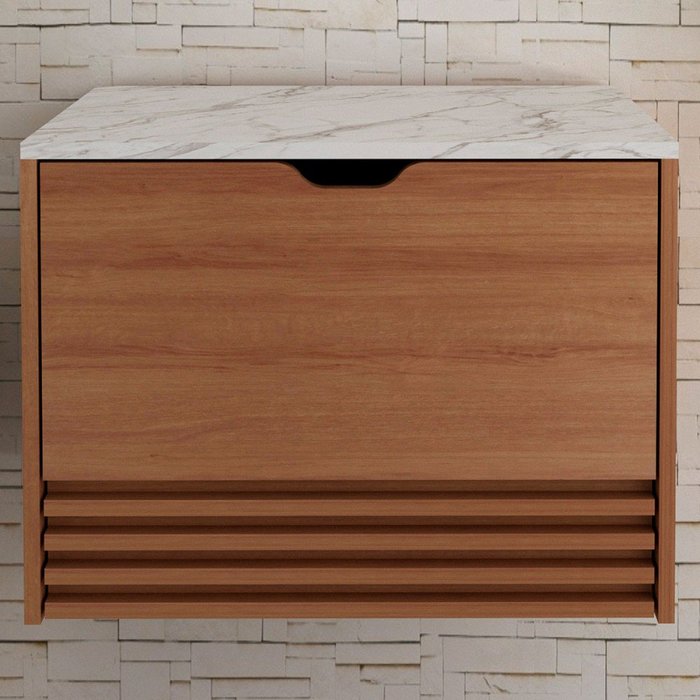 Armário de Banheiro 1 Porta 1 Gaveta Amêndoa/Mármore Branco Bn3613 - Tecno Mobili