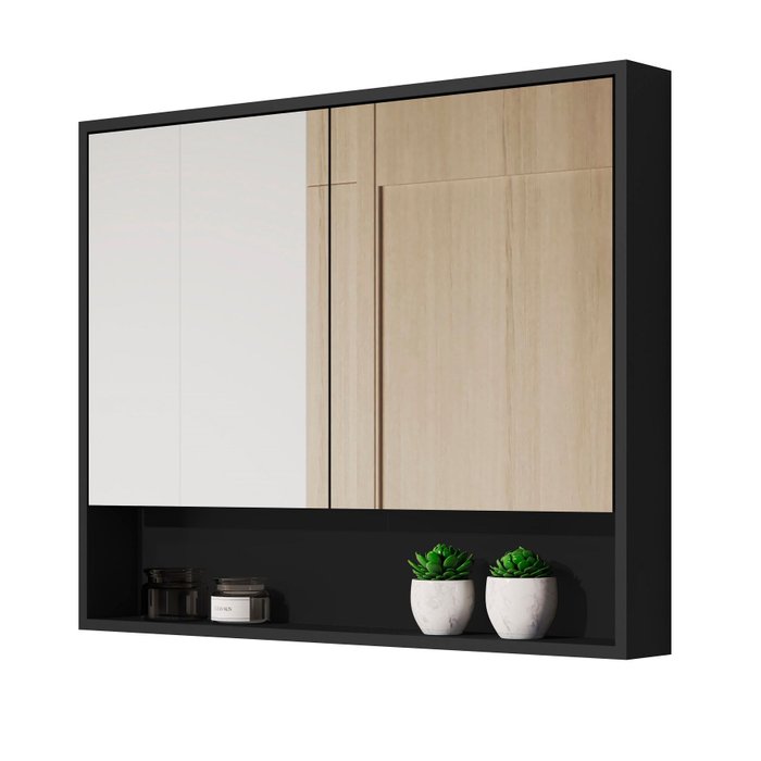 Armário de Banheiro Aéreo Espelheira Eros 2 Portas Preto