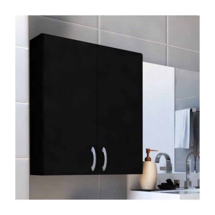 Armário de Banheiro Suspenso 2 Portas Arya Branco Preto