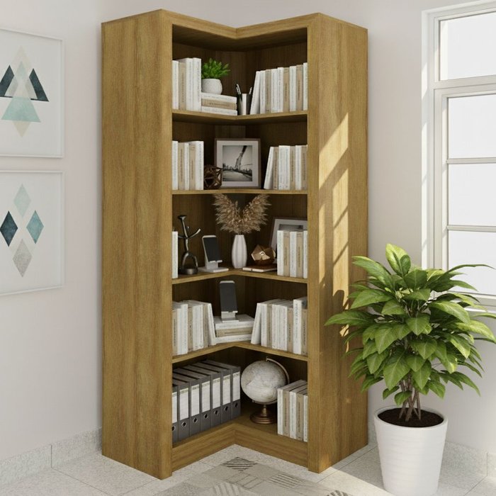 Armário de Canto Aberto com 6 Prateleira ME4132 Amendoa
