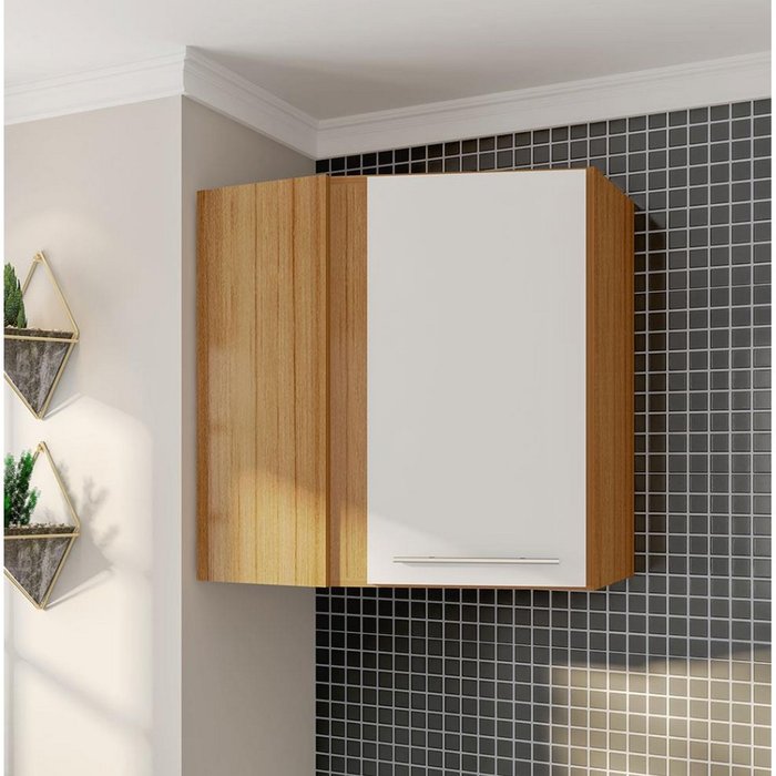 Armário de Canto Glamour com 1 Porta Bartira Branco com Madeira
