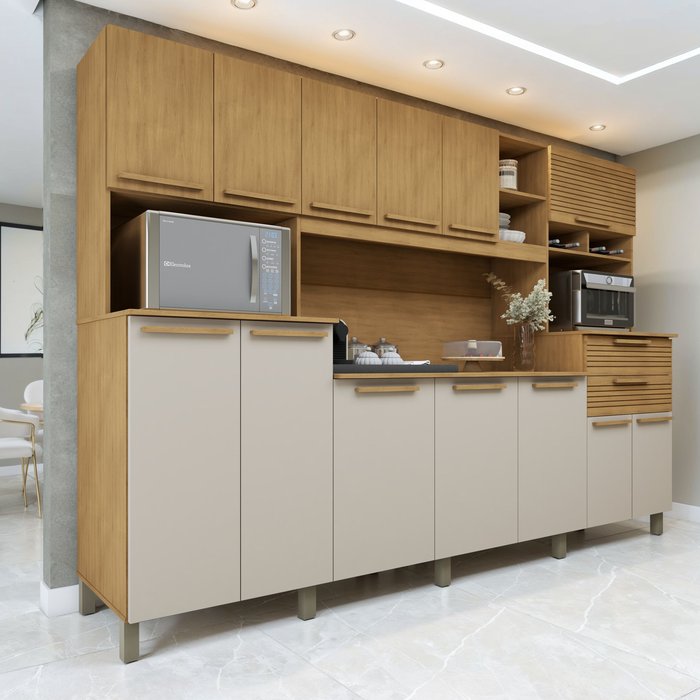 Armário de Cozinha 13 Portas 2 Gavetas Capitólio Cinamomo/Off White