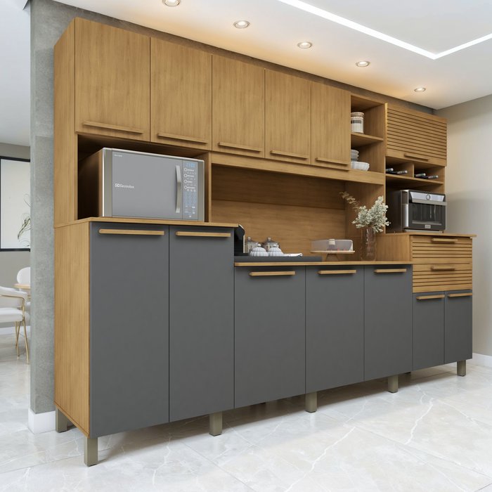 Nosso conjunto de armários para cozinha é ideal para quem busca praticidade e estilo em um só ambiente. Seu amplo espaço interno é perfeito para organizar mantimentos e utensílios, mantendo tudo ao alcance. Seu design moderno combina com diferentes decorações, valorizando o ambiente e otimizando o espaço disponível. Seja para uma casa ou apartamento, esta cozinha completa é uma excelente escolha para unir funcionalidade e charme.