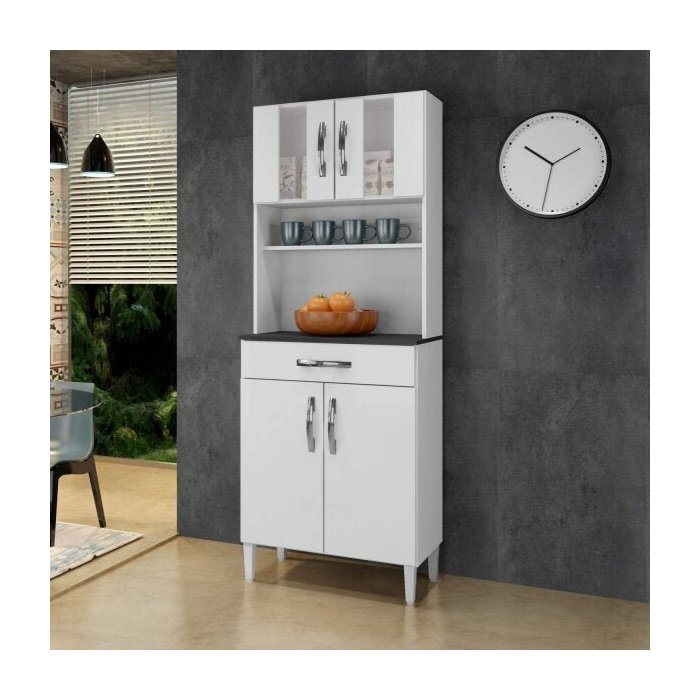 Armário de Cozinha 4 Portas 2 com Vidro 1 Gaveta Milão Arte Móveis