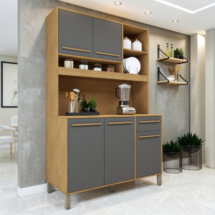 Armário de Cozinha 5 Portas 1 Gaveta Agata Cinamomo/Grafite