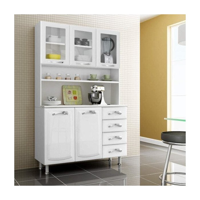 Armário de Cozinha 5 Portas 3 de Vidro 4 Gavetas Premium Itatiaia