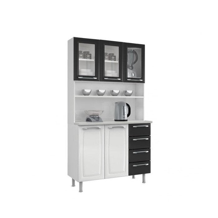 Armário de Cozinha 5 Portas 3 de Vidro Criativa Itatiaia Branco/Preto