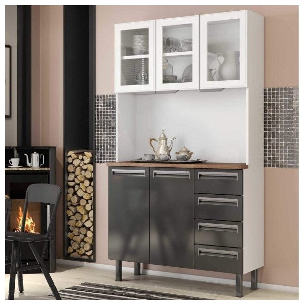 Design inovador na categoria, mais sofisticação, modernidade e durabilidade. Elegância e perfeita combinação das tendências mundiais de cores e acabamentos. O Armário Roma 5 portas com a combinação de 4 gavetas de aço, utiliza o sistema desliza fácil com trava de segurança. Balcões com 3 níveis diferentes de altura para melhor organizar seus utensílios.