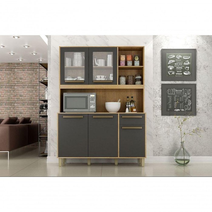 Armario de Cozinha 5 Pts 3 Nichos 1 Prateleira Cinamomo/grafite Cinamomo/Grafite