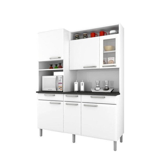 Armário de Cozinha 6 Portas 1 de Vidro 3 Gavetas Regina Itatiaia