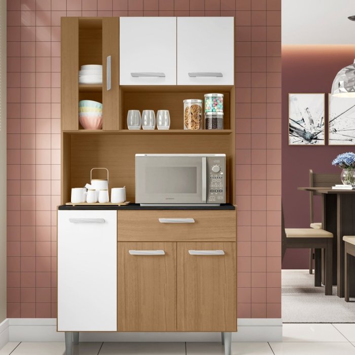 O Kit Cozinha 6 portas 1 gaveta Carol da Poliman Móveis destaca-se por sua praticidade e eficiência de uso, podendo ser utilizado em qualquer ambiente ou até mesmo como complemento de cozinha. Possui uma porta com detalhe em vidro além de mais 05 portas de bater proporcionando amplo espaço interno, 01 gaveta com corrediças metálicas, espaço para eletrodomésticos, nicho organizador decorativo, puxadores em polímero, pés PVC fixos de 13cm. Estrutura em MDP Perffect Touch de maior resistência e com proteção Bacterban que inibe a proliferação de fungos e bactérias na superfície do móvel e portas MDP em pintura UV. Produto ecologicamente correto com embalagens preparadas p/ evitar avarias e permitir que o produto chegue em perfeito estado em sua casa. Perfeita combinação com todos os ambientes.