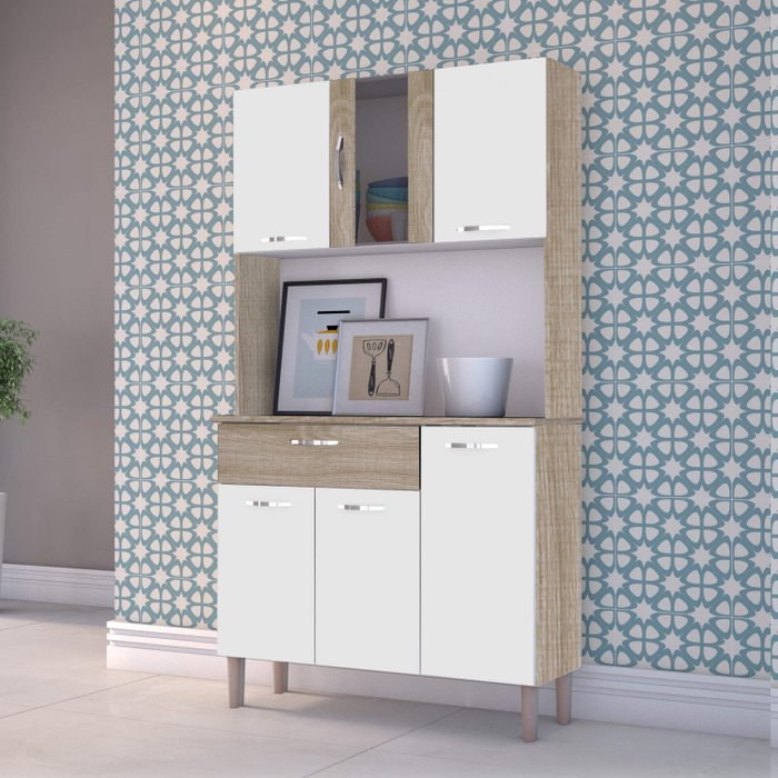 Armário de Cozinha 6 Portas 1 Gaveta Kit Pan Kits Paraná Nogal/White