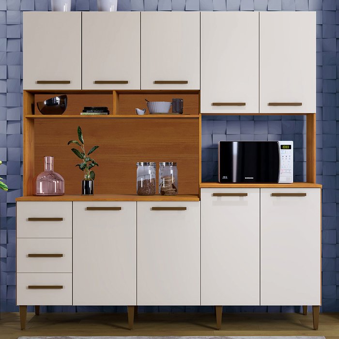 Armario de Cozinha 9 Portas 3 Gavetas Belo Horizonte:naturalle/off Naturalle/Off