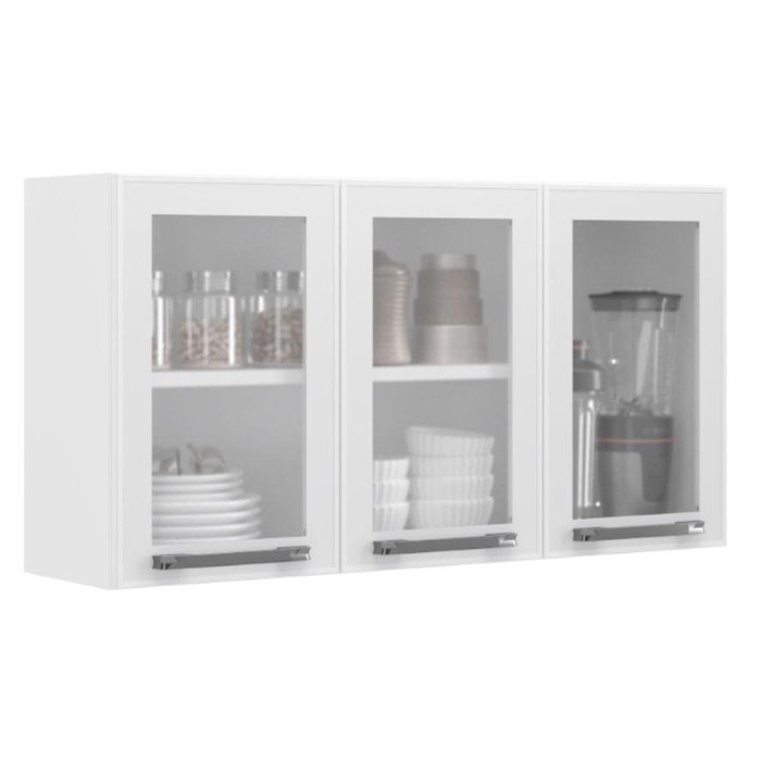 Armário de Cozinha Aéreo Itatiaia 3 Portas Com Vidro Florença Branco Neve