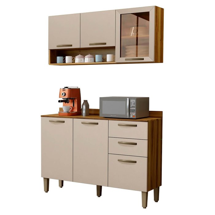 Composta por armários, gavetas, prateleiras, balcão para pia, oferece tudo o que é necessário para ter uma cozinha completa.