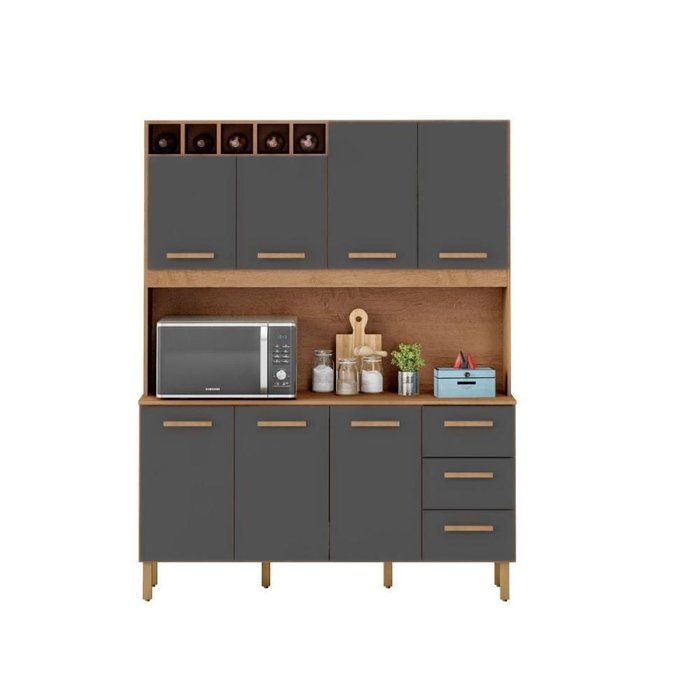 | Modelo | Armário de Cozinha Alice 1,57m com 7 Portas Amêndoa Grafite |