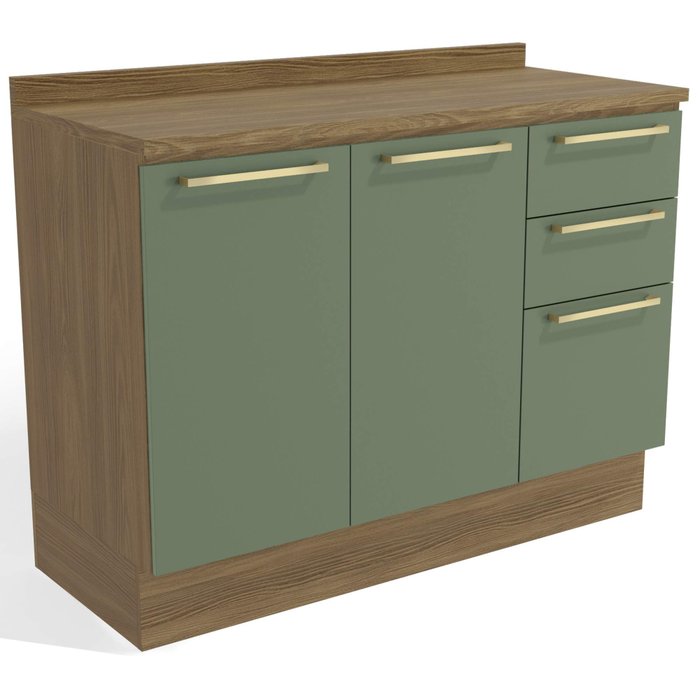 Armário de Cozinha Balcão 2 Portas e 3 Gavetas 120cm com Tampo M624 Botanic Kappesberg Nogueira/Verde Oliva