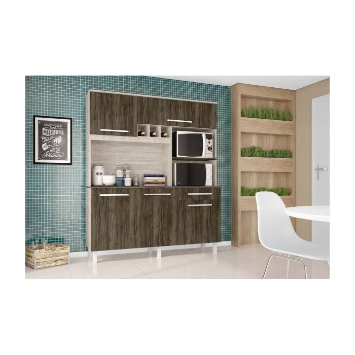 Esse modelo é composto por armários e gavetas que oferecem espaço suficiente para armazenar utensílios de cozinha e eletrodomésticos.