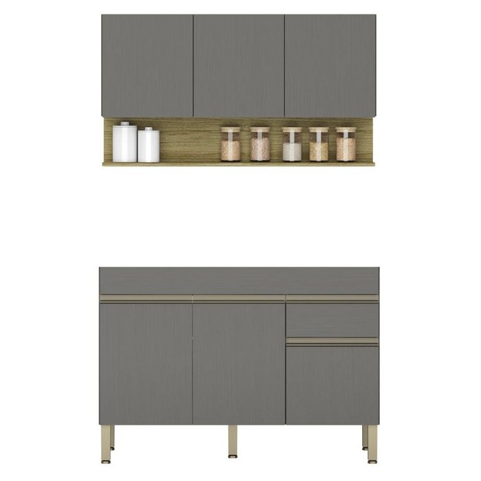 Armário de Cozinha com Balcão sem Tampo 120cm Lina K02 Gris/Freijó - Mpozenato