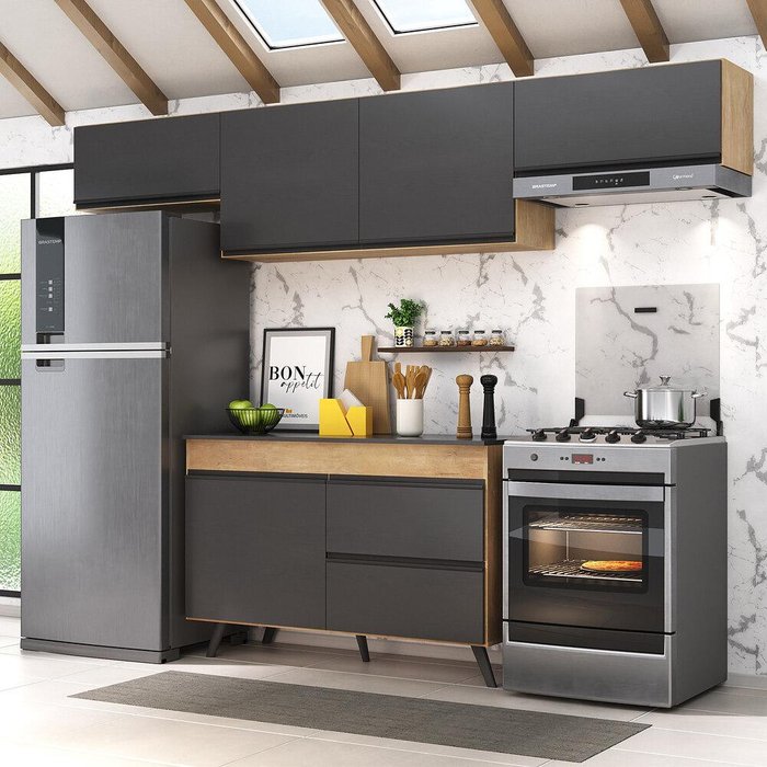 Armário de Cozinha Compacta 4 peças Lisboa Multimóveis MP2137 Rustic/Preto