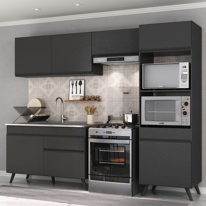 A Cozinha Compacta 4 peças com Armário e Balcão MP3693 Veneza Multimóveis tem um excelente custo benefício e um amplo espaço interno. Produzida em MDP com acabamento acetinado (cerca de 20% de brilho), que garante maior durabilidade e resistência, possui corrediças metálicas (mais leveza no manuseio), pés retrô em polipropileno, que deixam o ambiente mais estiloso, puxadores em ABS e tampo em MDP 15mm com pintura de alta resistência. Os módulos são individuais e você pode montar da maneira que se adaptar melhor ao seu ambiente. O balcão possui tampo removível (compatível com pia de 120 cm). Para deixar sua cozinha mais bonita e organizada, possui módulo para forno e microondas, além de compartimento especial para utensílios mais altos.