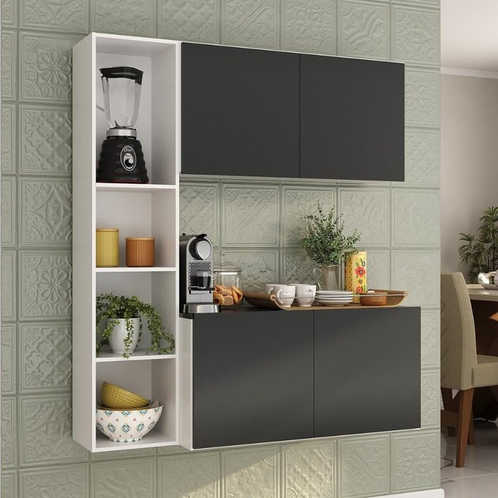 Armário de Cozinha Compacta com Balcão Linea Fit 4 Portas Multimóveis Mp2218 Branco/preto Preto