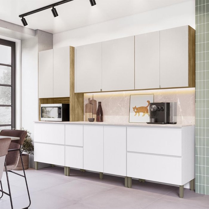 Armário de Cozinha Completa 11 Portas 4 Gavetas com Balcão Art - Freijó/artico/soft Freijó/Vanilla/CP Riscatto Freijó