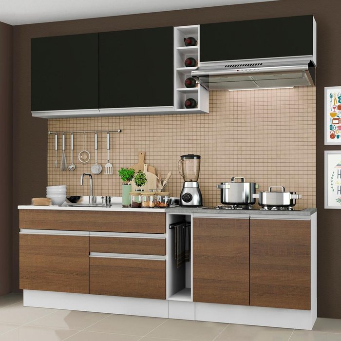 Armário de Cozinha Completa 220cm Branco/Preto/Rustic Parma Madesa 03
