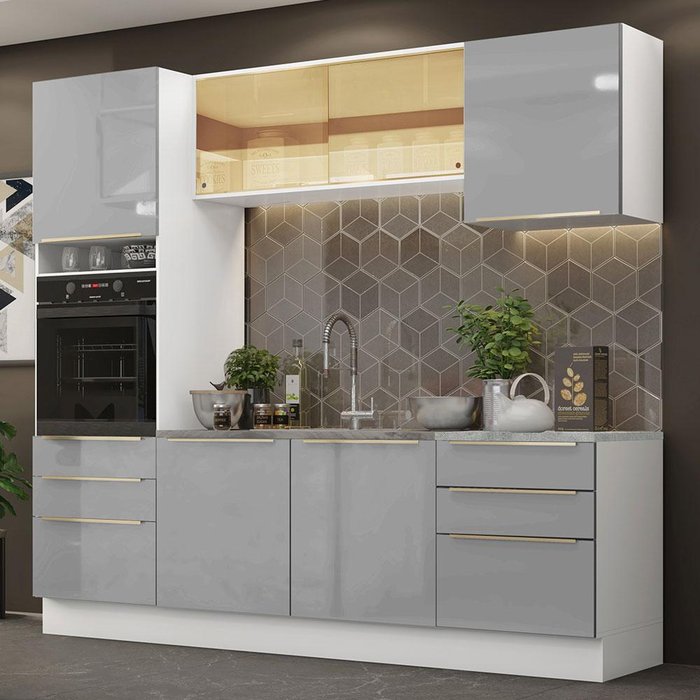Armário de Cozinha Completa 240cm Branco/Cinza Lux Madesa 02