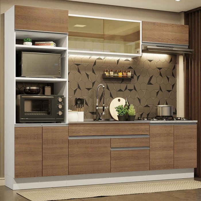 Armário de Cozinha Completa 270cm Branco Rustic Glamy Madesa 10